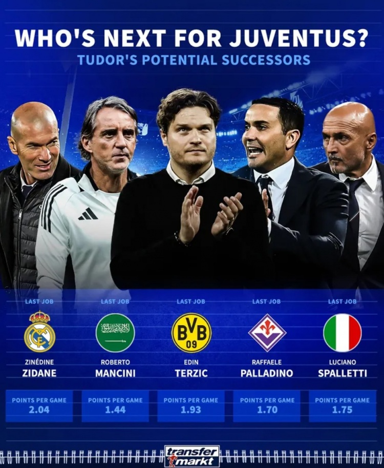 10月27日讯 尤文俱乐部本日依然通过官方晓示,衔命47岁主帅图多尔。《转会市集》也瞻望了几位尤文新帅热点候选,并排出了他们的上一次抓教球队和场均拿分。