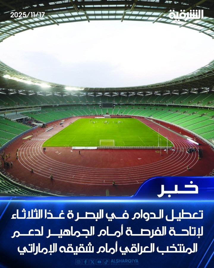 11月17日讯 据伊拉克沙尔吉亚电视台报谈,未来,伊拉克将在巴士拉省迎来与阿联酋的附加赛限额争夺战,巴士拉省未来将停工停课休假一天,以便球迷们概况维持伊拉克国度队与阿联酋的比赛。