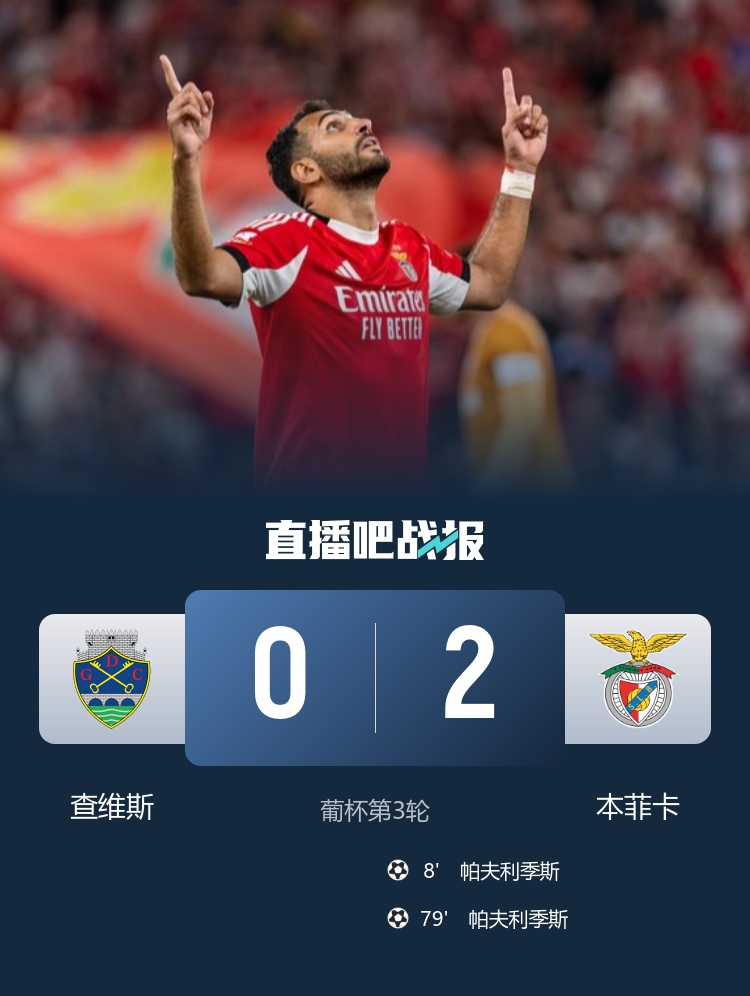 葡杯-本菲卡2-0查维斯晋级 帕夫利季斯寰宇波+双响苏达科夫献助攻