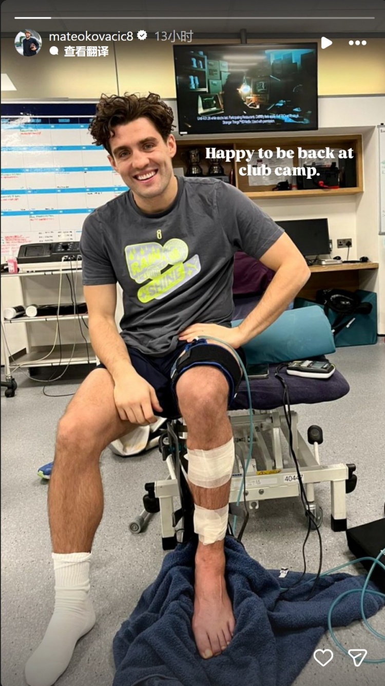 科瓦契奇还是回到俱乐部,开启新一阶段的康复程度,他在酬酢媒体上晒出新造型,配文:“很欢笑回到俱乐部磨砺营。”