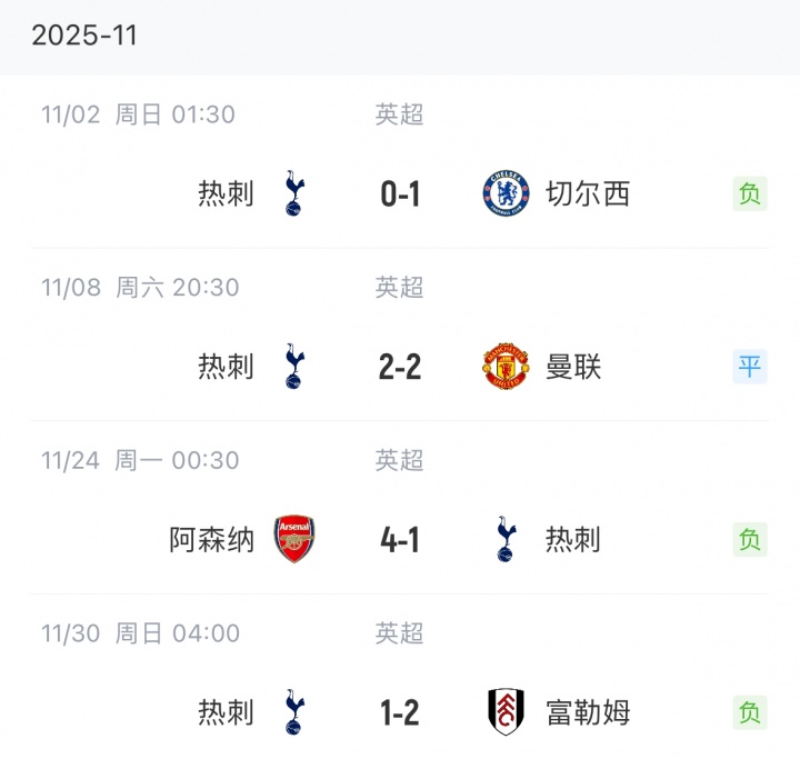 神不知,鬼不觉十一月快过完结,热刺这个月英超一场没赢