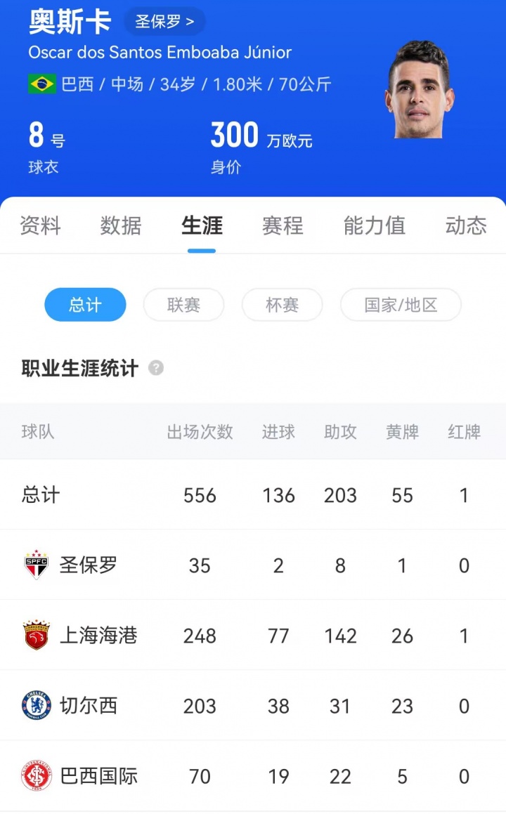34岁的奥斯卡行状生存曾效率巴西海外、切尔西、上海海港、圣保罗,上赛季中超死心后他解放身回到巴西,加盟圣保罗。