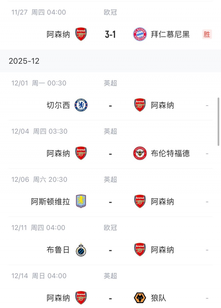 11月27日讯 欧冠焦点战,阿森纳3-1治服拜仁,全胜领跑积分榜。