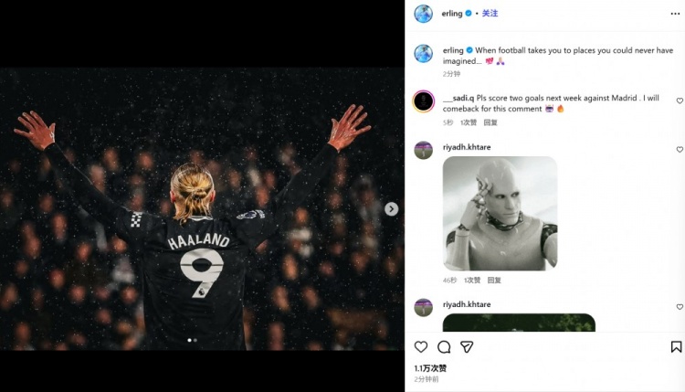 他也在赛后通过社媒晒出我方进球后的庆祝照,并配文:“足球带我去到我从未念念象过的处所……💯🙏🏻”