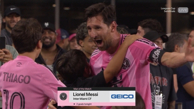 08月28日讯 定约杯半决赛,梅西梅开二度,迈阿密海外淘汰奥兰多城晋级决赛。梅西当选本场比赛最好球员。