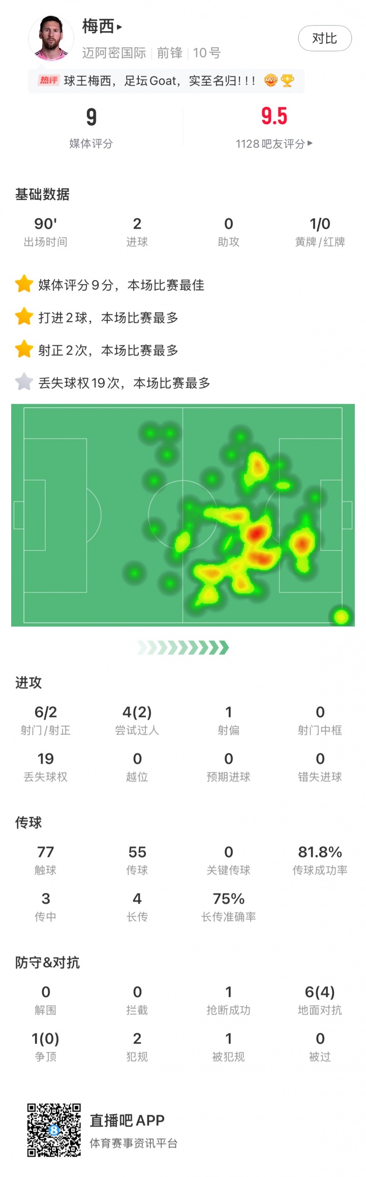 梅西本场复出数据如下: